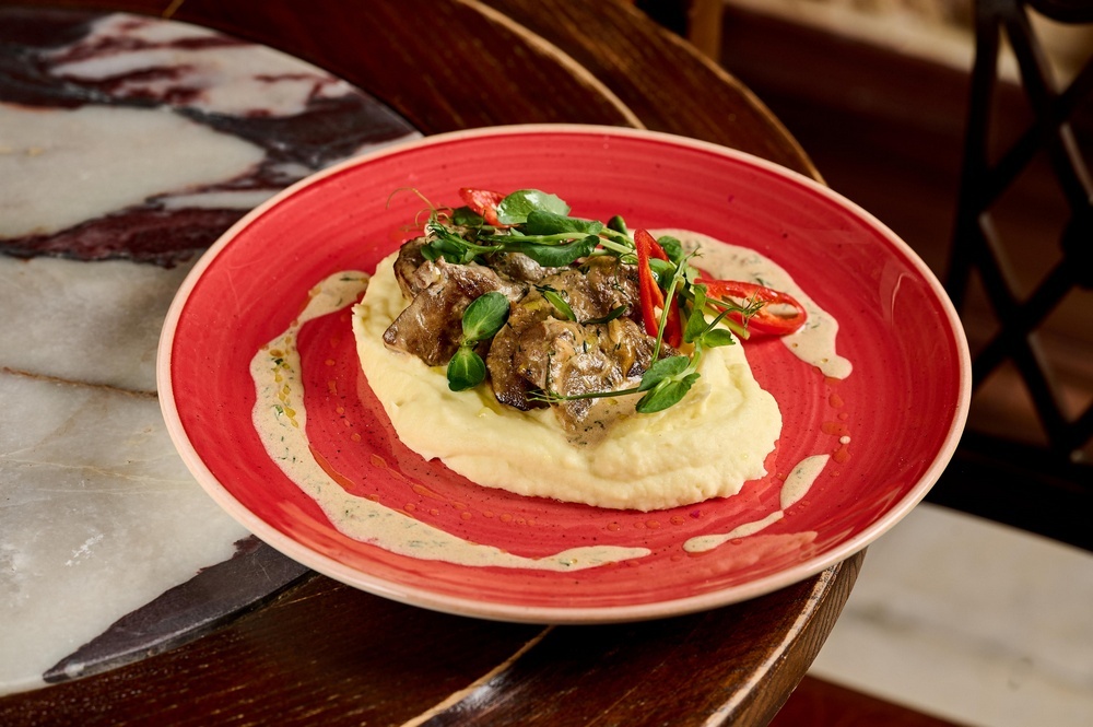 Теляча печінка з картопляним кремом